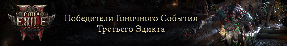 Все победители этих гонок получат уникальный предмет Добродетель полубога, тогда как первые места в каждом классе по итогам всех гонок выиграли дополнительный официальный плакат Path of Exile 2 от Displate на свой выбор. Поздравляем быстрейшего игрока всех трёх гонок! Помимо наград выше, ему достанется возможность создать гадальную карту. Первые места в каждом классе Победители первой гонки Победители второй гонки Победители третьей гонки Ещё раз благодарим вас за участие в нашем гоночном событии Третьего эдикта. Сейчас мы находимся в процессе распределения призов. Для наших победителей и всех остальных заинтересованных в получении официальных плакатов Path of Exile 2 от Displate, ознакомьтесь с полным ассортиментом здесь. ![]() |