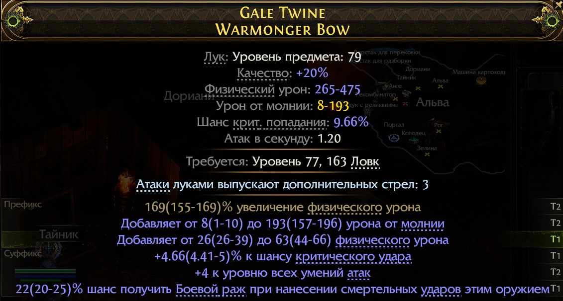 2. Нужна дабл елем экстра на Against the Darkness. 3. Колчан т1 флат лаитнинг и т1-т2 продж спид, еще лучше вместо апс +1 продж. 4. Лук на вармонгер базе с тремя сокетами с критом, для примера: