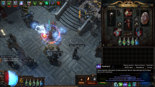 Есть аура "Решимость", она базово удерживает 50% маны, после всех модификаторов удержание составляет 29.68%