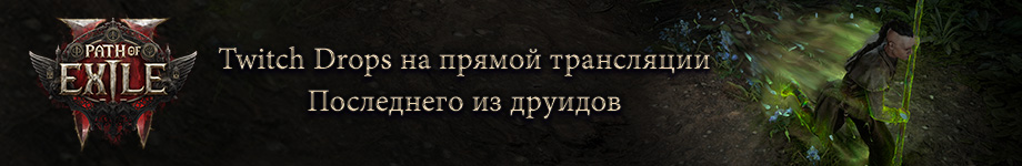 Как принять участиеПросто привяжите вашу учётную запись Path of Exile к Twitch (см. ниже) и смотрите прямой эфир GGG Live на www.twitch.tv/pathofexile или любом канале в разделе Path of Exile 2 в течение 45 минут.Начало: 4 декабря в 22:00 MSK (дек. 04, 2025 2:00 PM (GMT-5) по вашему местному времени) Окончание: 5 декабря в 22:00 MSK (дек. 05, 2025 2:00 PM (GMT-5) по вашему местному времени) Вы получите эффект кувырка зелёных просторов после просмотра суммарно 45 минут на любом канале с подключенной системой Twitch Drops, транслирующем Path of Exile 2 во время мероприятия. Таким образом, предмет гарантирован каждому, кто посмотрит любую трансляцию Path of Exile указанный промежуток времени. Акция действительна для всех аккаунтов. Если вы планируете транслировать Path of Exile 2 во время нашего прямого эфира и хотите подключить Twitch Drops для ваших зрителей, вы можете это сделать через Панель управления автора здесь. Привязка вашего аккаунта Path of Exile к TwitchОткройте вашу страницу настроек Twitch, авторизовавшись на сайте. Если ваш аккаунт не привязан к Twitch, нажмите кнопку “Подключить” в разделе “Другие подключения”. Завершите процесс на сайте Twitch, и вы будете перенаправлены обратно к странице настроек Twitch. Если ваш аккаунт уже привязан, на странице вы увидите надпись “Ваша учетная запись Path of Exile привязана к вашей записи Twitch”.После набора достаточного количества минут для получения эффекта кувырка зелёных просторов, его необходимо забрать из инвентаря Twitch до окончания акции. После этого он немедленно станет доступен в вашем списке микротранзакций в Path of Exile 2 и позже будет добавлен в виде эффекта ртутного флакона в Path of Exile. В дальнейшем эффект кувырка зелёных просторов можно будет купить в магазине. Нам не терпится поделиться с вами подробностями Последнего из друидов! Чтобы быть в курсе событий в преддверии прямого эфира, не забудьте посетить наши VK и форумы. Увидимся на прямой трансляции GGG Live на www.twitch.tv/pathofexile! |