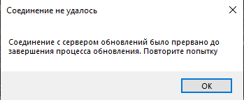 Аналогичная проблема, "соединение с сервером обновлений было прервано до завершения процесса обновления" и всё. Если кто-то знает как это забороть, буду очень признателен.