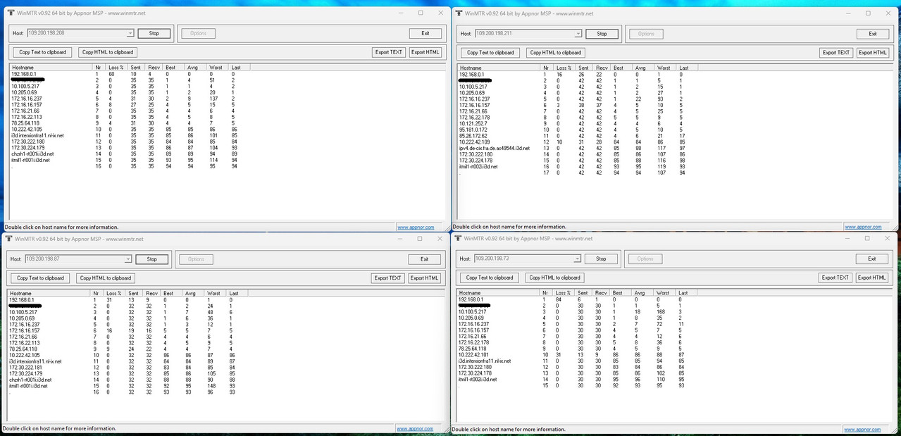 "Появилась проблема с высоким пингом до сервера (ip сервера)касается Milan серверов и других как стокгольм франкфур в принципе всей европпы, делали трассировку, передавал своему провайдеру, проблем не нашли, запросили трассировку от сервера до меня, чтобы я передал им показания